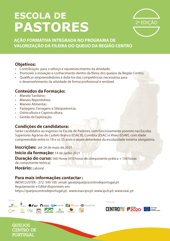 Após o sucesso da primeira edição da “Escola de Pastores”, decorrida em 2019, e numa perspetiva de continuidade, o Programa de Valorização da Fileira do Queijo da Região Centro arrancará com uma segunda edição desta atividade formativa, já a partir de dia 14 de junho de 2021.