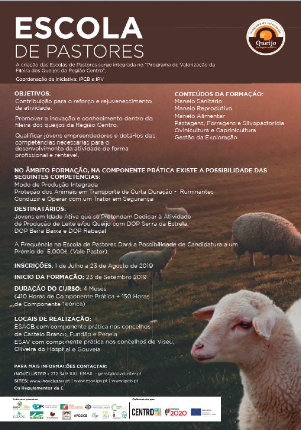 A Escola de Pastores, integrada no projeto “Programa de Valorização da Fileira do Queijo da Região Centro”, candidatado ao Programa Operacional Centro 2020, visa o desenvolvimento de um programa de formação que permita, não só, o reforço desta profissão, bem como, a promoção da inovação e conhecimento dentro da fileira dos queijos DOP da Região Centro e a valorização e aumento da competitividade dentro da mesma.